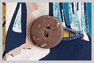 アロハシャツに使われるボタンの種類は実に多彩。 ここで紹介した以外にも尿素(ユリア系樹脂)ボタン、アクリルボタン、メタルボタンなどがあり、 柄のデザインや地色とのバランスで時に全体のイメージを左右することにもなるディテール。