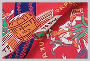 抜染(ばっせん)とは、生地を地染めし、柄の部分の色を抜染剤で抜くと同時に他の色で染め付ける手法。濃い地色と対照的な明るい色の組み合わせが可能なため、鮮やかな発色が際立つ。